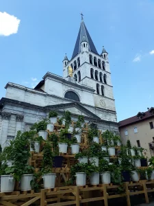 St. Peter’s Cathedral (1535), with a high Renaissance and Gothique façade, the inside is quite dark but has a few paintings.