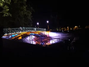 The Bridge allows you to go from Jardin de l’Europe to the Pâquier park, passing over the Thiou river which is entering the city.